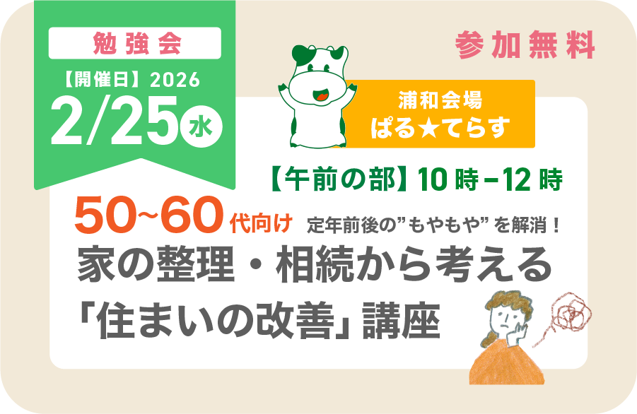 【2026/2/25(水)午前・浦和】家の整理・相続から考える住まいの改善|定年前後の”もやもや”を解消!
