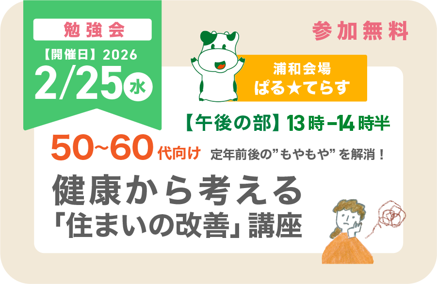 【2026/2/25(水)午後・浦和】健康から考える住まいの改善|定年前後の”もやもや”を解消!