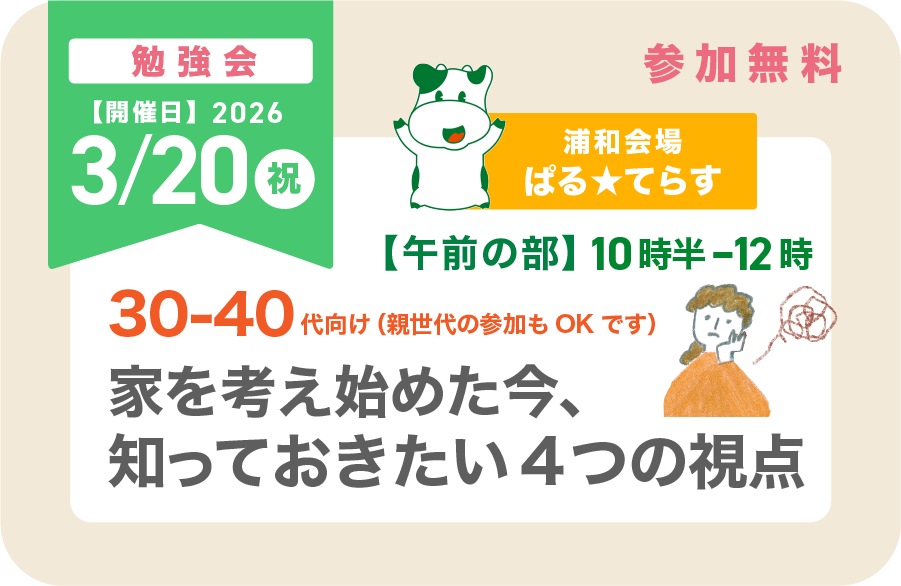 【2026/3/20(金/祝)午前・浦和】家を考え始めた今、知っておきたい4つの視点