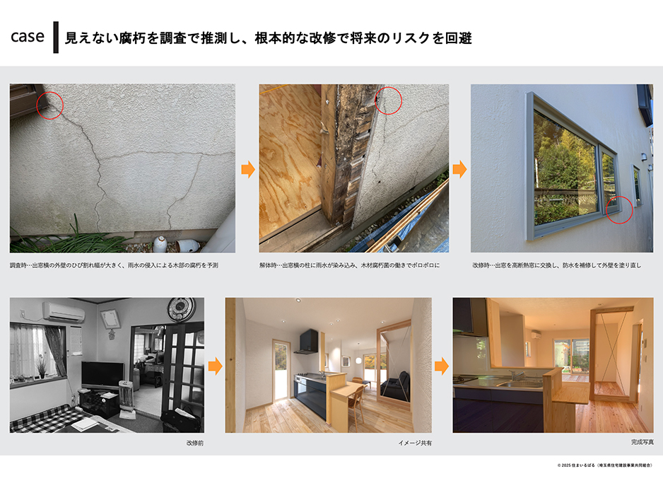 見えない腐朽を調査で推測し、根本的な改修で将来のリスクを回避